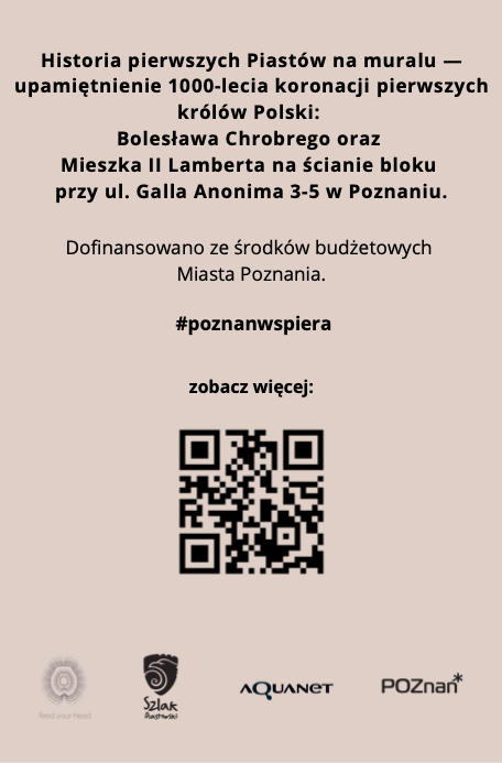 Nowy mural, wieńczący Rok 1000-lecia koronacji pierwszych królów Polski – Bolesława Chrobrego oraz Mieszka II Lamberta, został namalowany przy ulicy Galla Anonima 3-5 w Poznaniu. Autorką ilustracji jest Iza Dudzik, za koncepcję projektu odpowiada Krzysztof Gruszczyński, natomiast konsultacji historycznych podczas przygotowań udzielił dr Michał Hirsch.